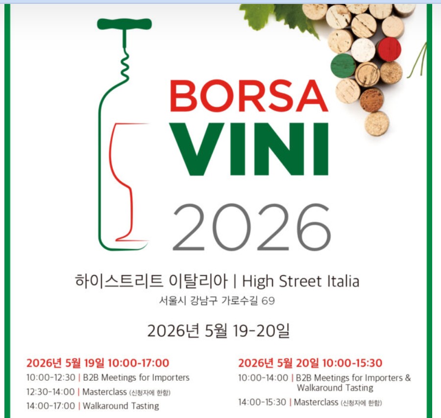 외부시음회) 이탈리아 와인 수출 상담회 ‘보르사비니(Borsa Vini 2026)’ 서울 개최