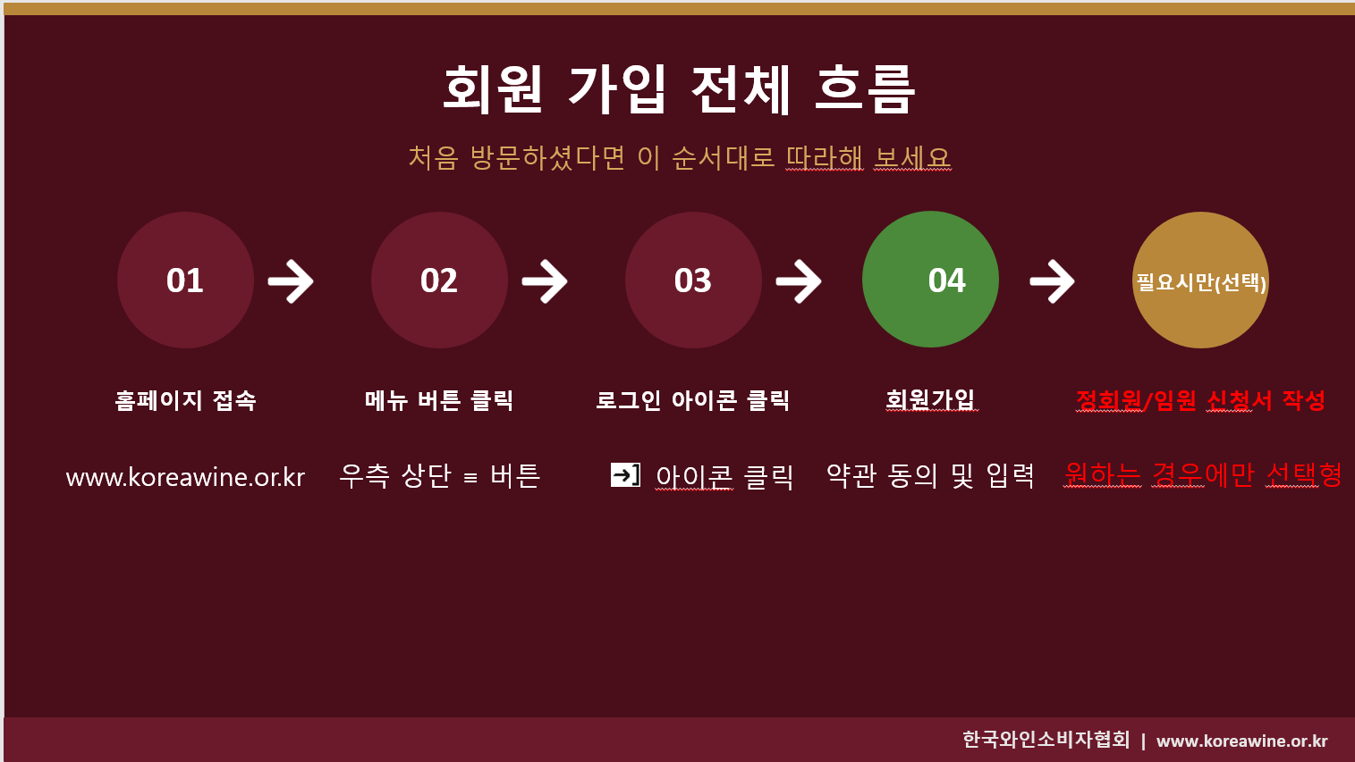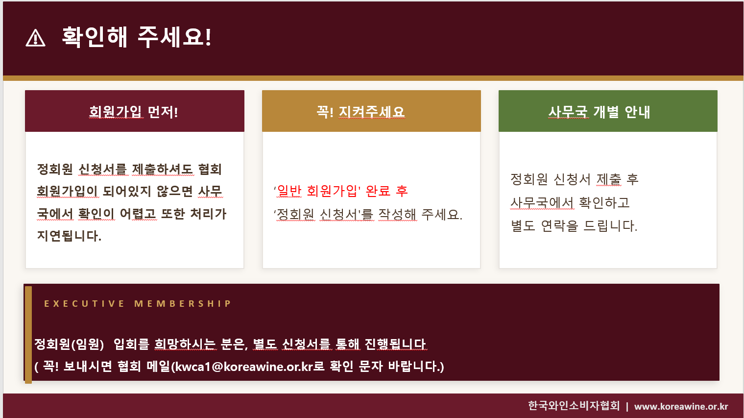 신청하신 후에는 협회 메일(kwca1@koreawine.or.kr)로 확인 문자 바랍니다.