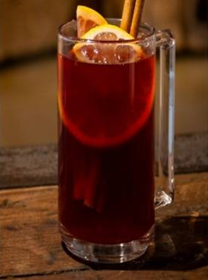 4. 체에 걸러 과일을 제거하고, 따뜻할 때 잔에 따른다. (기호에 따라 알코올을 첨가하기 위한 브랜디·코냑을 약간 넣으면 풍미가 깊어진다.)