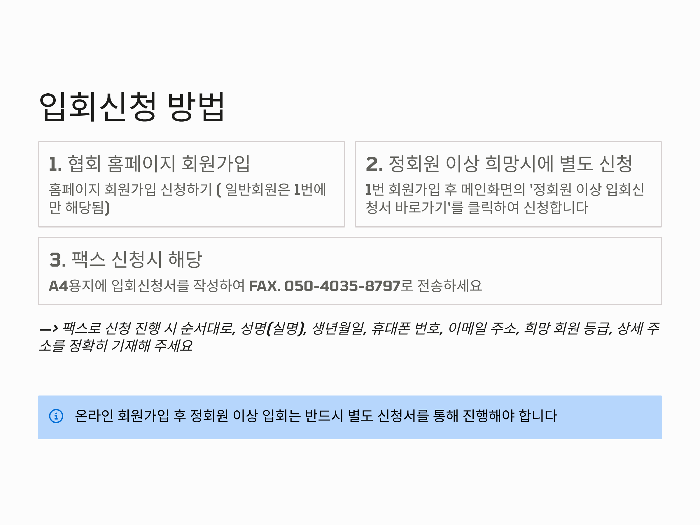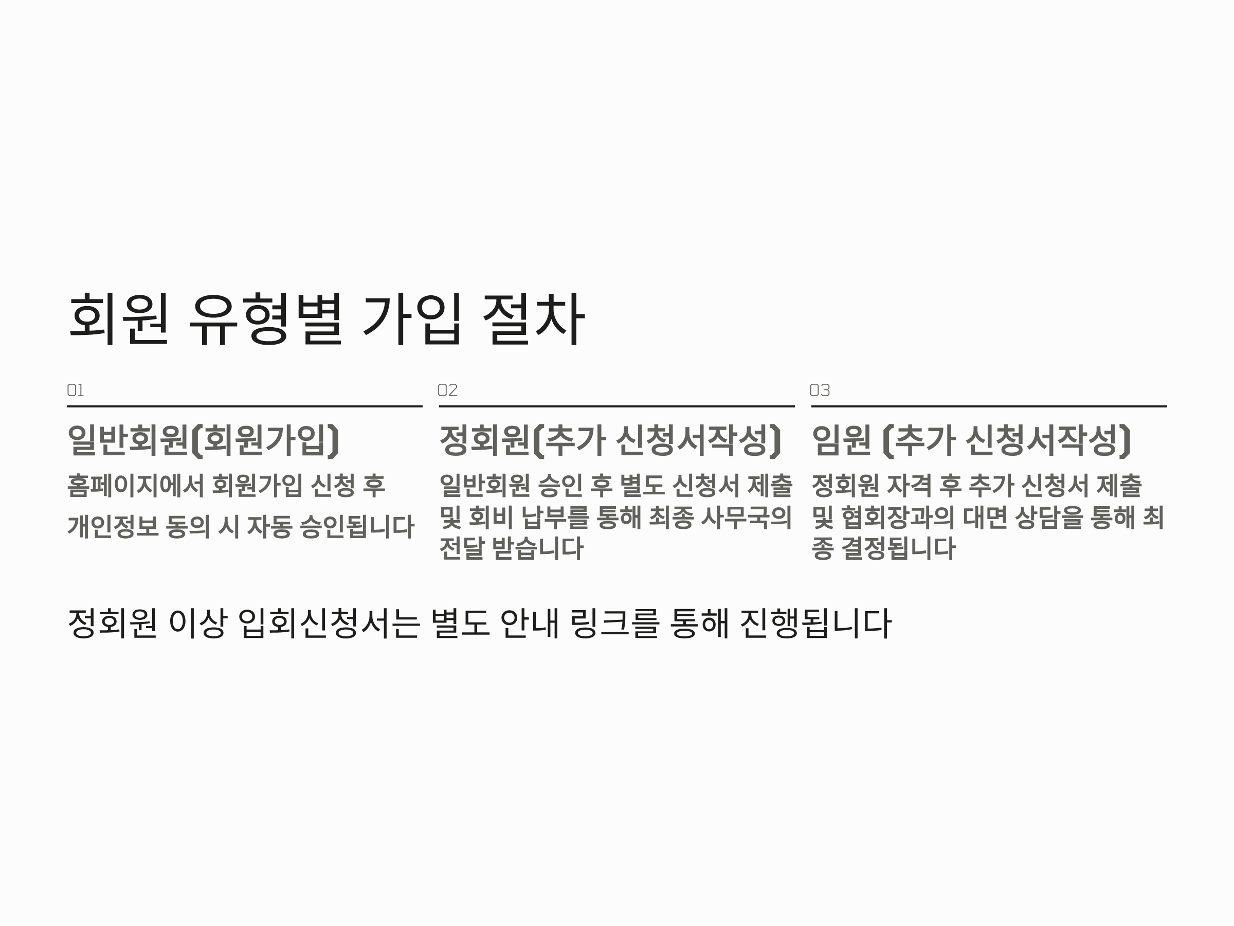 * 정회원(임원 포함)이상 입회를 희망하시는분은, 여기 정회원 이상 입회 신청서 '바로가기 클릭 '